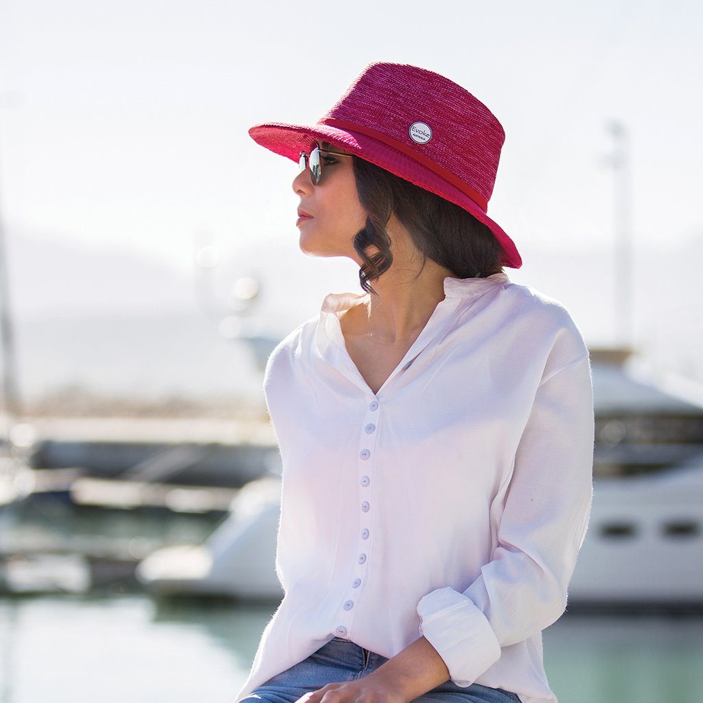 The Aston Fedora is the ideal lightweight ladies golf hat. This style comes with a unique hidden feature: a hidden magnet in the headband helps keep your golf ball-marker handy. Our unique internal Comfy-Fit clip makes this Fedora easy to adjust for the perfect fit and offers wind resistance; ideal for your next round of golf.