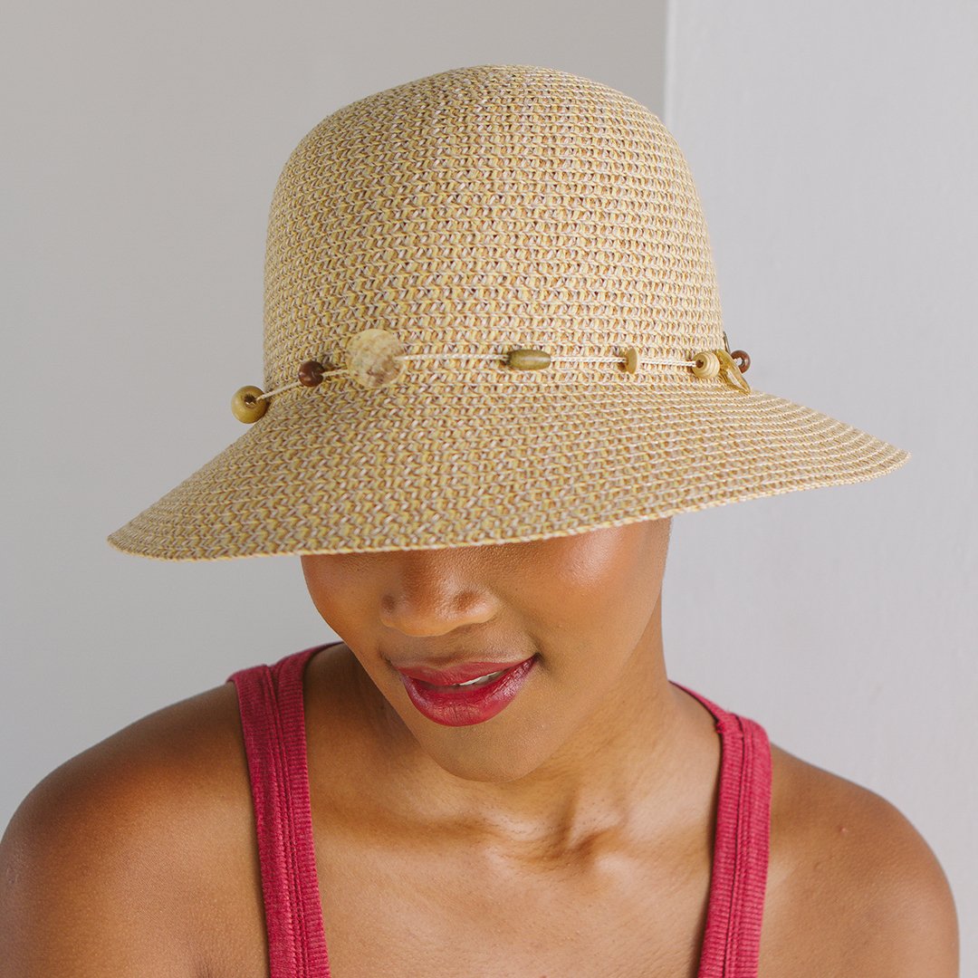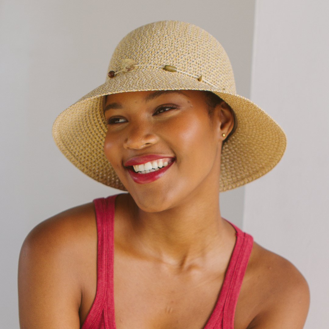 Ready for summer! The Gatsby Bucket hat has a beaded trim around the crown and knot at the back which gives this style a playful look. This wide-brimmed Bucket hat is easy to wear at the beach, enjoying a picnic in the park or spending time in your garden while offering excellent sun protection for your skin.