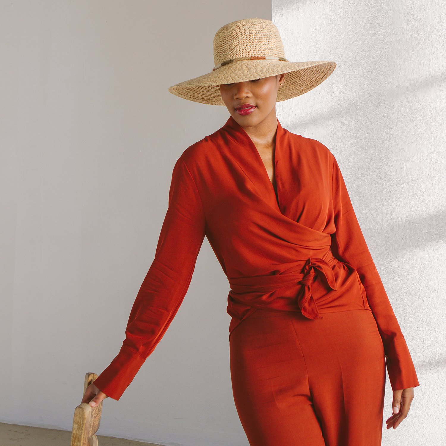 This chic and elegant wide-brimmed Raffia hat will keep you cool and protected from the sun all day. Handwoven by skilled artisans, no two Mia sun hats are alike. The colour-block rope trim around the crown adds flair & texture to this style.
